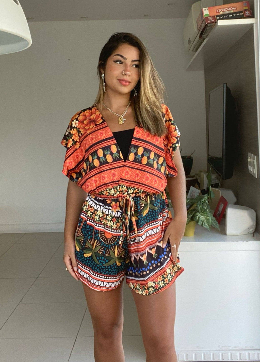 Este macaquinho é uma combinação perfeita de estilo e conforto. Inspirado nas cores vibrantes da fazenda, o Macaquinho Inspiração Farm em Fluity traz um toque de alegria e diversão para qualquer ocasião. Feito em tecido fluity, oferece caimento perfeito e liberdade de movimento. Garanta já o seu e se inspire!